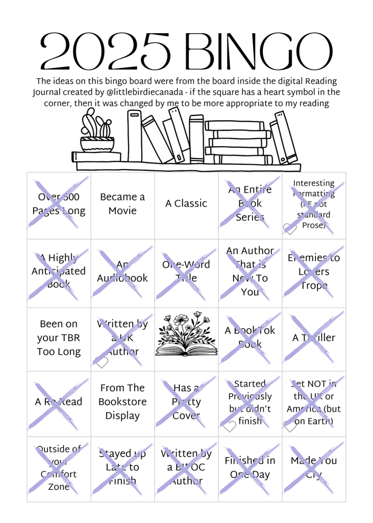 There is still plenty of time this year to make headway on my 2025 specific challenges (12 Books to Read in 2025, and Bingo!) so I’m not too worried. And as for the Author specific challenges, I was under no delusion that I would complete both (if either) of these challenges in 2025 so it’s not a big issue that not a lot of progress has been made. I’m not stressed about it! I’m just enjoying reading!